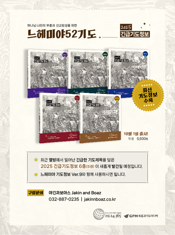 할렐루야! 2025 느헤미야52기도정보 긴급기도정보책이 새롭게 출판되었습니다.