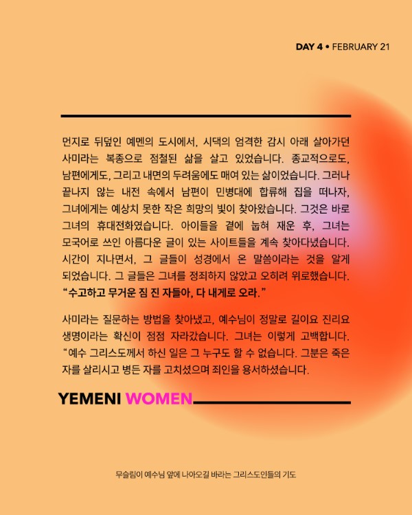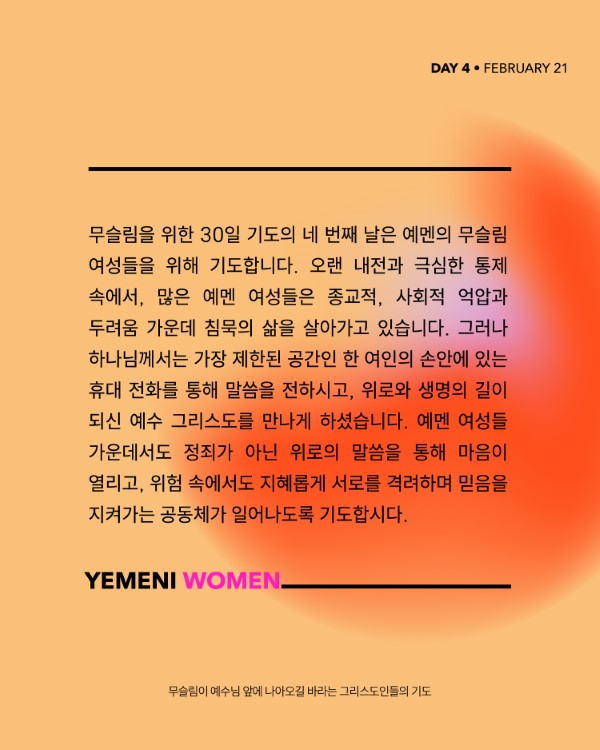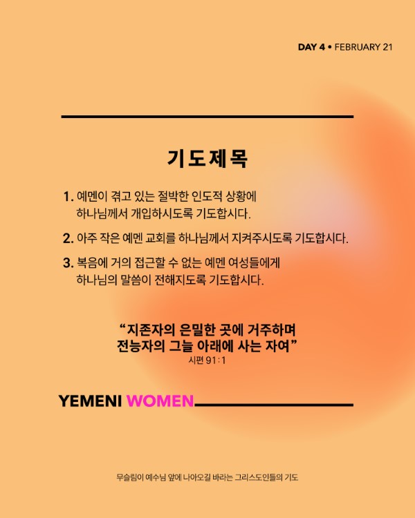 2026 무슬림을 위한 30일 기도 DAY 4[02-21] 예멘 여성들