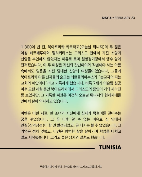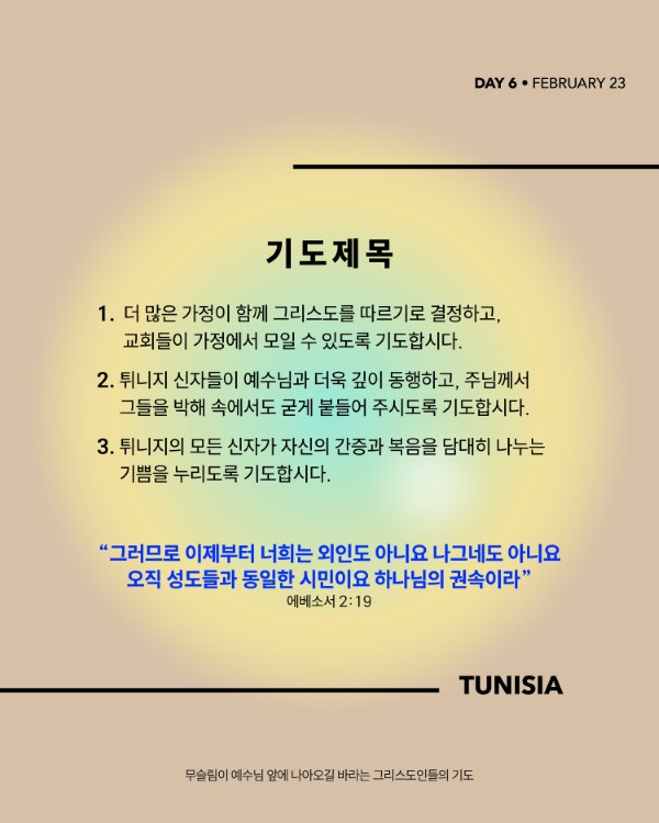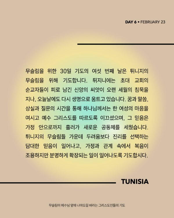 2026 무슬림을 위한 30일 기도 DAY 6[02-23] 튀니지