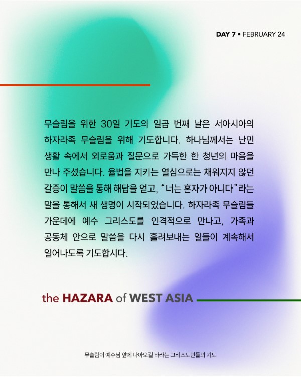 2026 무슬림을 위한 30일 기도 DAY 7[02-24] 서아시아의 하자라족