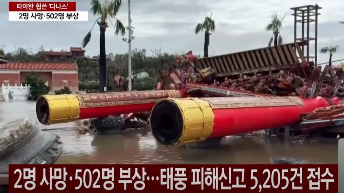 ▲ 태풍 ‘다나스’, 대만 서부 강타…2명 사망·502명 부상 제4호 태풍 ‘다나스’가 7일 대만 서부 지역을 강타하면서 최소 2명이 숨지고 500여 명이 다치는 등 큰 인명피해가 발생했다. 대만 중앙통신은 다나스가 자이현, 타이난시, 가오슝시, 핑둥현 등 중남부 지역을 중심으로 상륙했다고 보도했다. 사망자는 타이난시에서 발생한 60대 남성 2명으로 확인됐다. 다나스는 최대 시속 144km의 강풍과 폭우를 동반해 북상했으며, 7일 […]