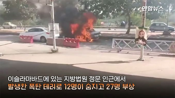 ▲ 파키스탄 이슬라마바드 법원 인근 폭탄 테러…최소 12명 사망, 27명 부상 파키스탄 수도 이슬라마바드의 지방법원 정문 인근에서 11일 폭탄 테러가 발생해 최소 12명이 숨지고 27명이 부상했다고 연합뉴스가 보도했다. 모흐신 나크비 파키스탄 내무장관은 테러범이 경찰차 옆에서 폭발물을 터뜨렸다고 밝히며 “공격자가 법원 진입을 시도했으나 실패하자 경찰차를 표적으로 삼았다”고 말했다. 이슬라마바드 경찰은 사상자 대부분이 행인과 법원에 출석하려던 민간인이라고 […]