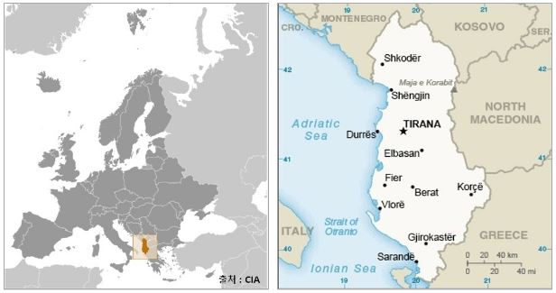 Area | 28,748㎢, Located in the northwest of the Balkan Peninsula in southeastern Europe, north of Greece.