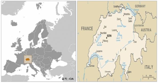Area |  41,277㎢, Located in the Alps, in the central inland region of Europe.