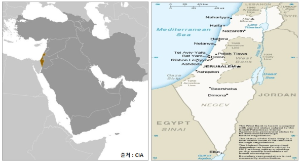 Area | 21,937㎢, located on the eastern Mediterranean coast between Egypt and Lebanon in Western Asia.